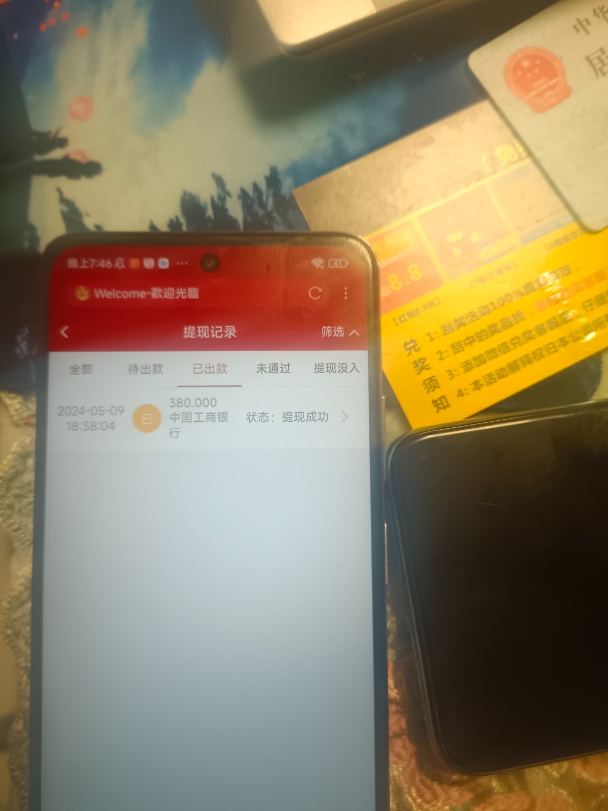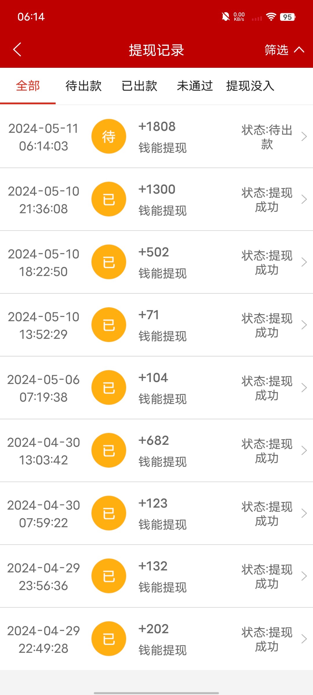 第一次时候就二块钱赢了1.8k给了手持出了 这次五一送的彩金38也出了2.1k 以为这次不可能提现的了 没想到还给两分钟就到钱包了