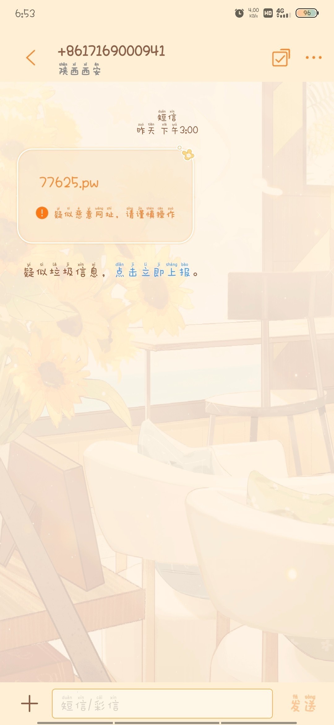 自己看看有没有这一条短信 或者拿下方图去碰瓷