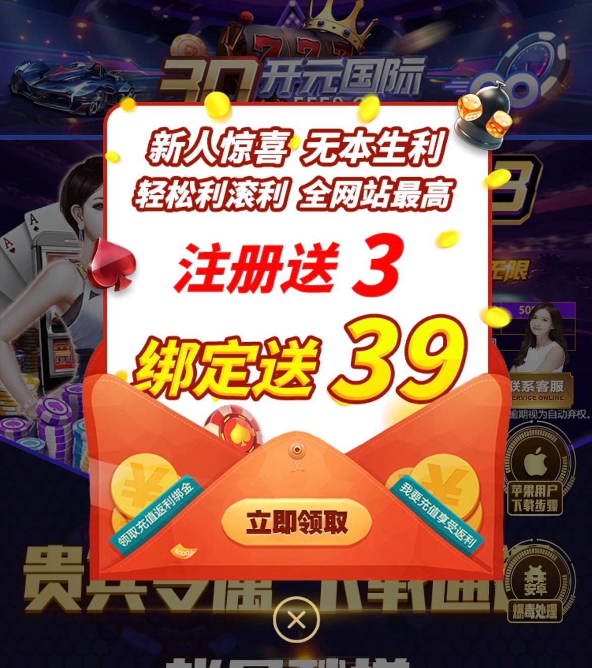 活动:新用户注册绑卡优惠大厅自助申请特邀彩金送39总共送42限制问客服