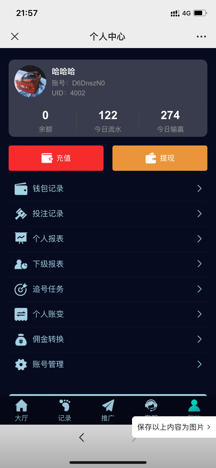 体验金26分,流水需达到104分 余额达到168分以上全额下分即可提现16元现金福利。 体验金可以点击充值提交体验金通道免费上分26