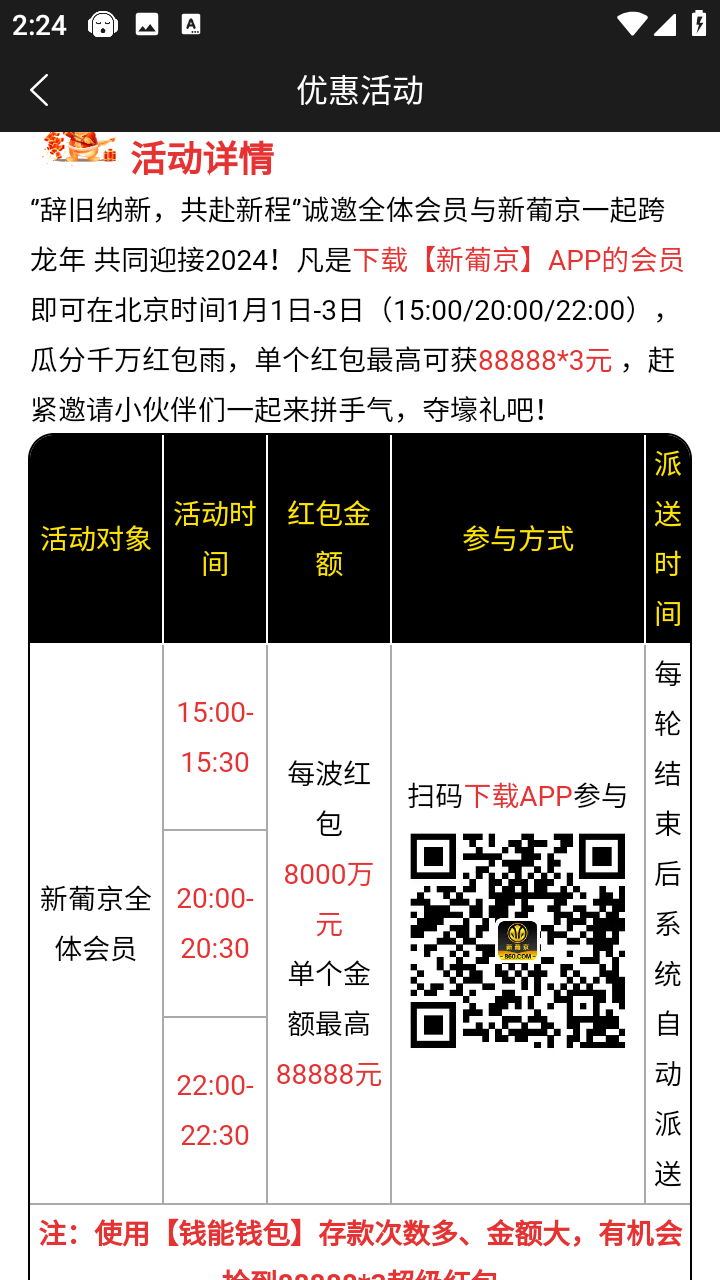 注册绑卡下载APP,活动优惠里面自行申请彩金,2023年12月30日开始元旦3倍红包,每天3-4次,1号当天凌晨可以抢888到990元红包,完全不需要充值,每天还有免费红包抢,新人注册都有下载APP注册彩金送!!冲啊!!!