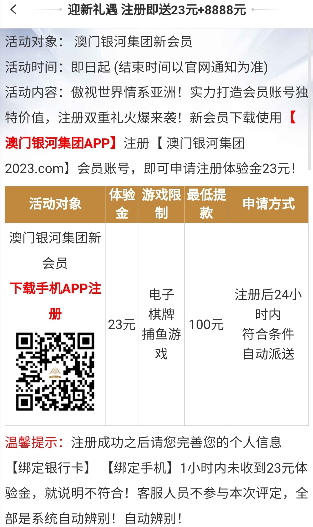 新用户注册下载完善资料一小时内送18,不送无视。限制电子/棋牌/捕鱼,最低100提。