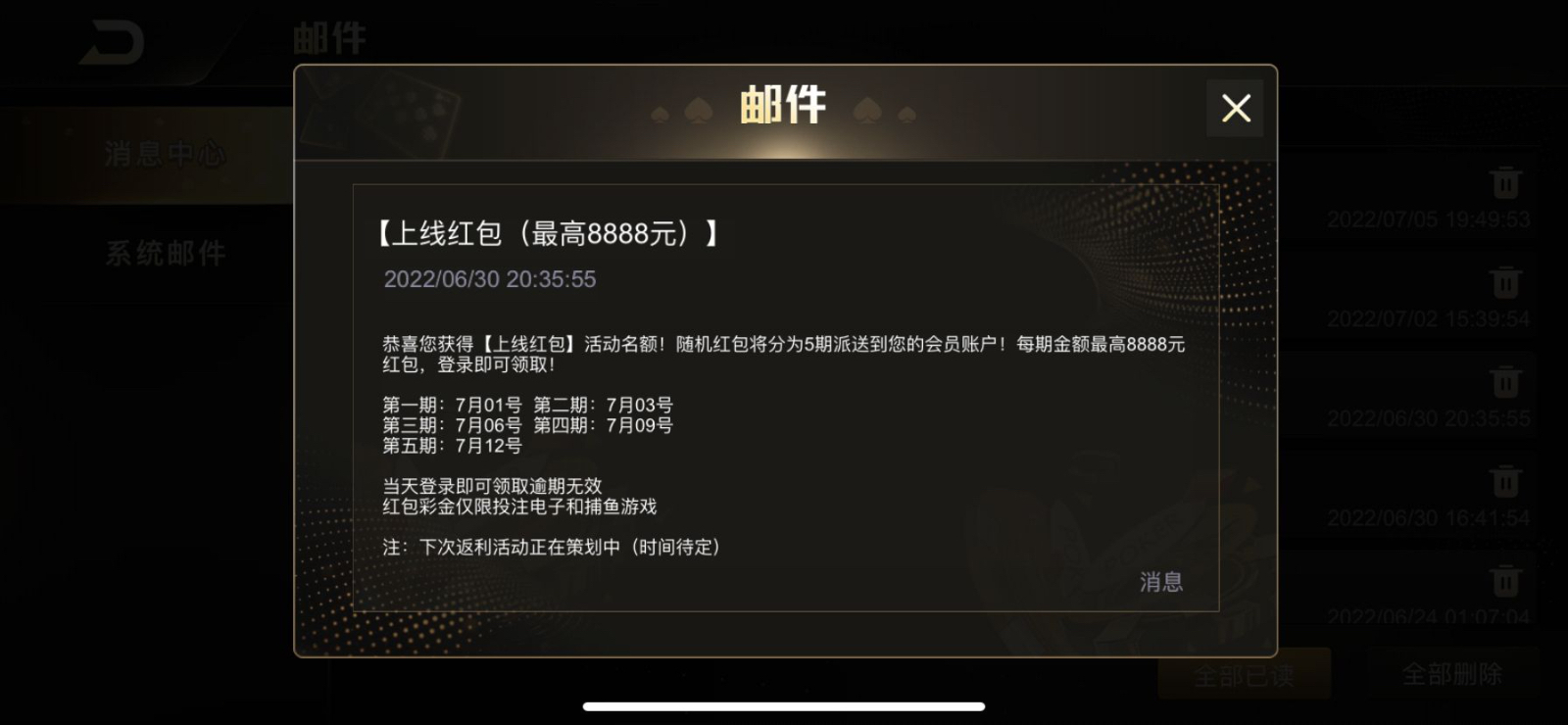 活动:老用户有号的登陆一般都是回馈10+,忘记以前哪个平台了,7.12登陆还有,只能捕鱼电子
