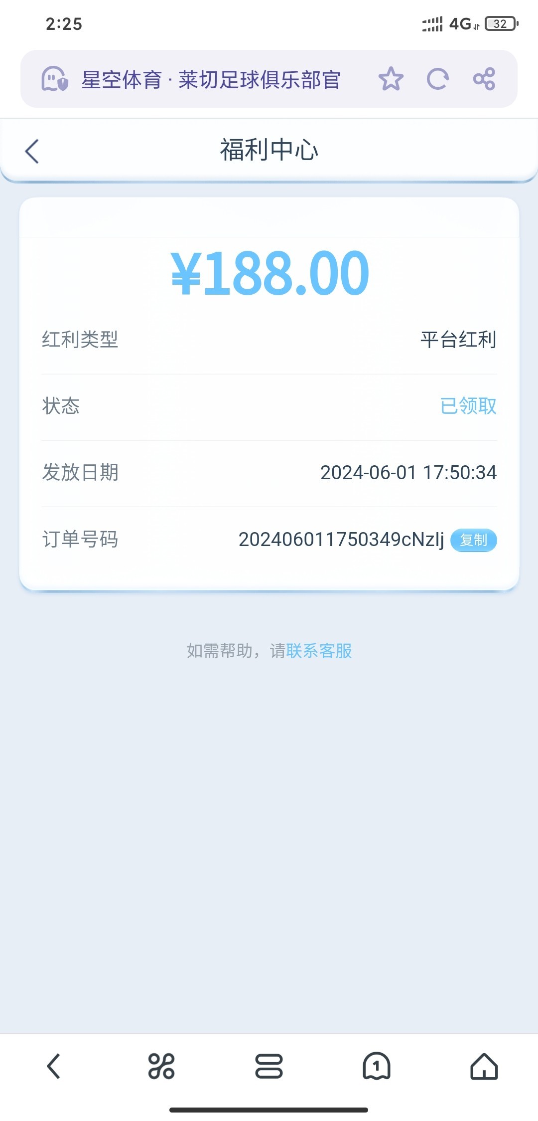 有号的去看一下找专属客服应该还可以再领188