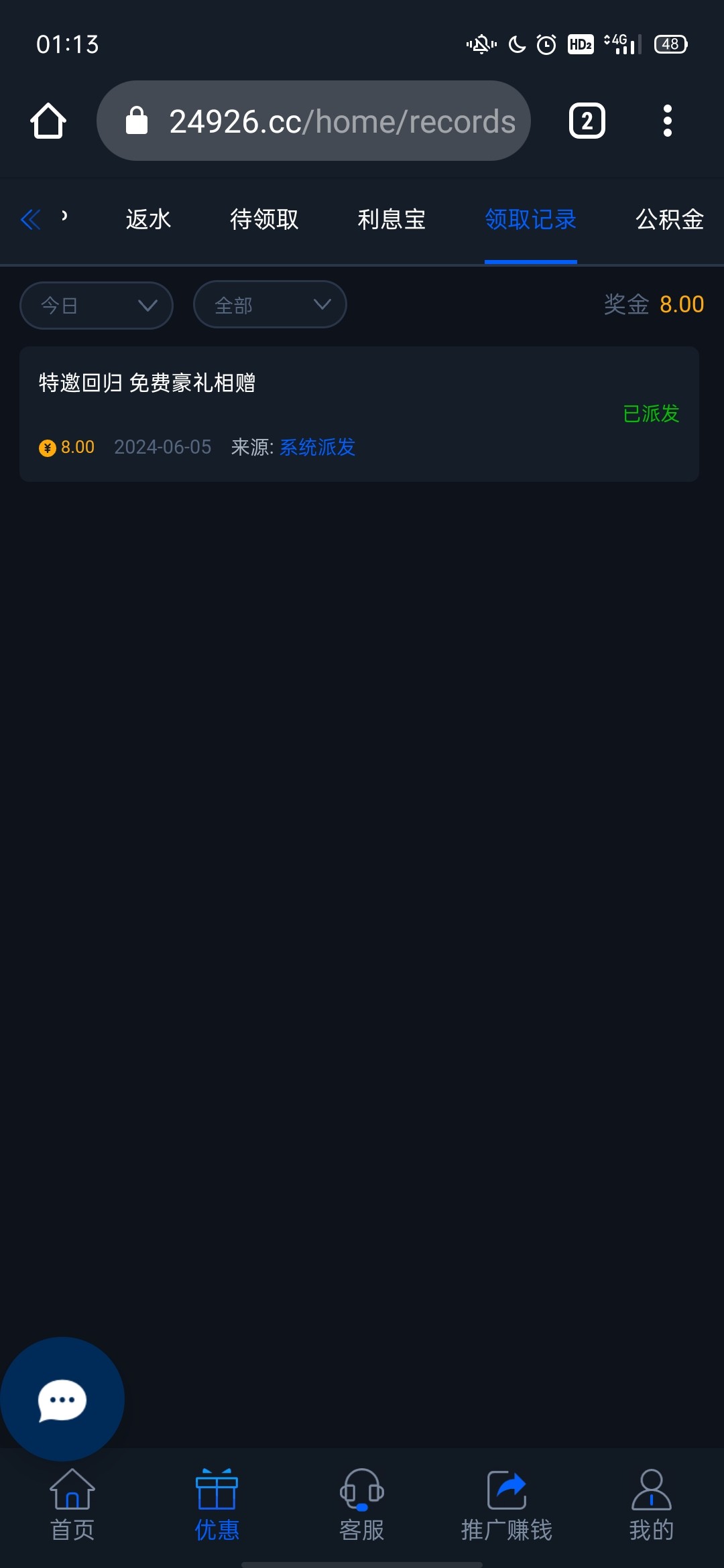 新人注册绑卡一小时内送28,这个台子去年白嫖了500,我的号v1也送了8块钱