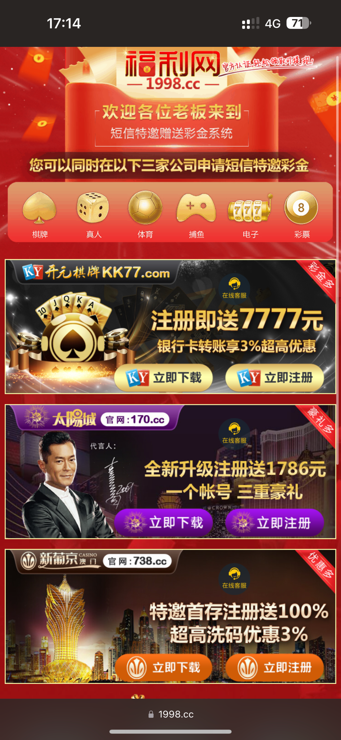 新用户进入福利网里面有三个平台都是碰瓷特邀注册送18的,没玩过的去试试吧