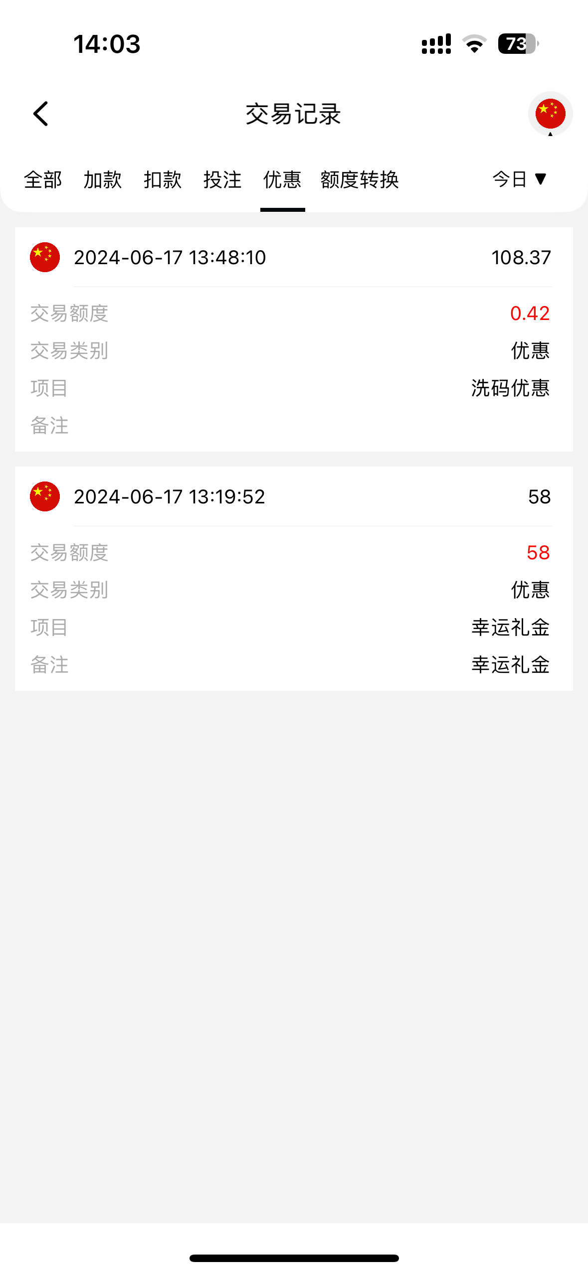 昨天领了  没有打出来