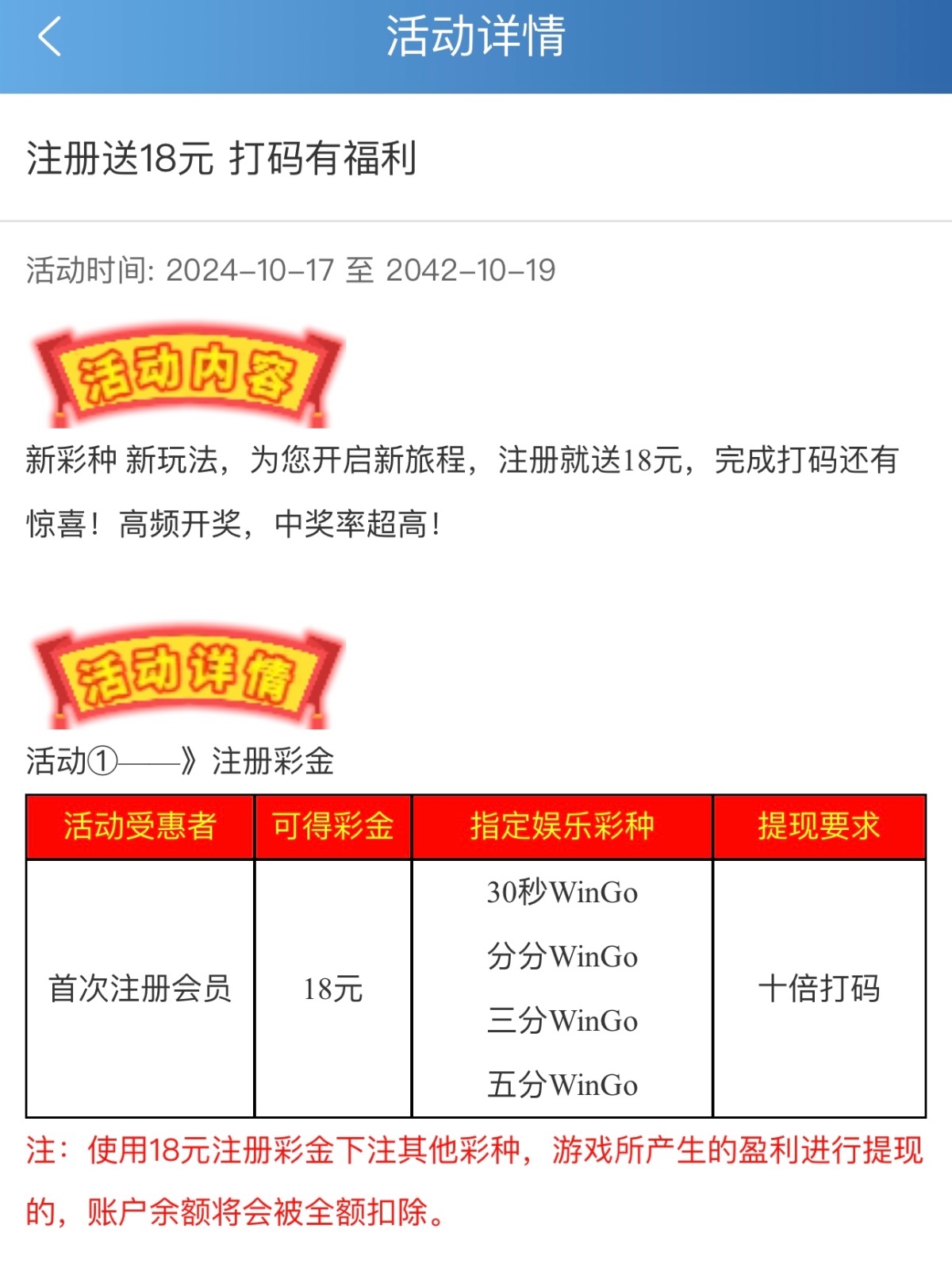下方台子新用户注册绑卡找客服申请18彩金只能玩wingo打到100提现 。