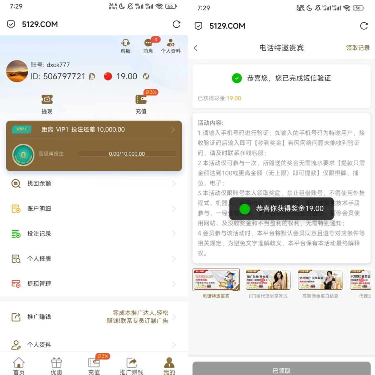 2个手机号都是特邀,注册2个号。全部出款100