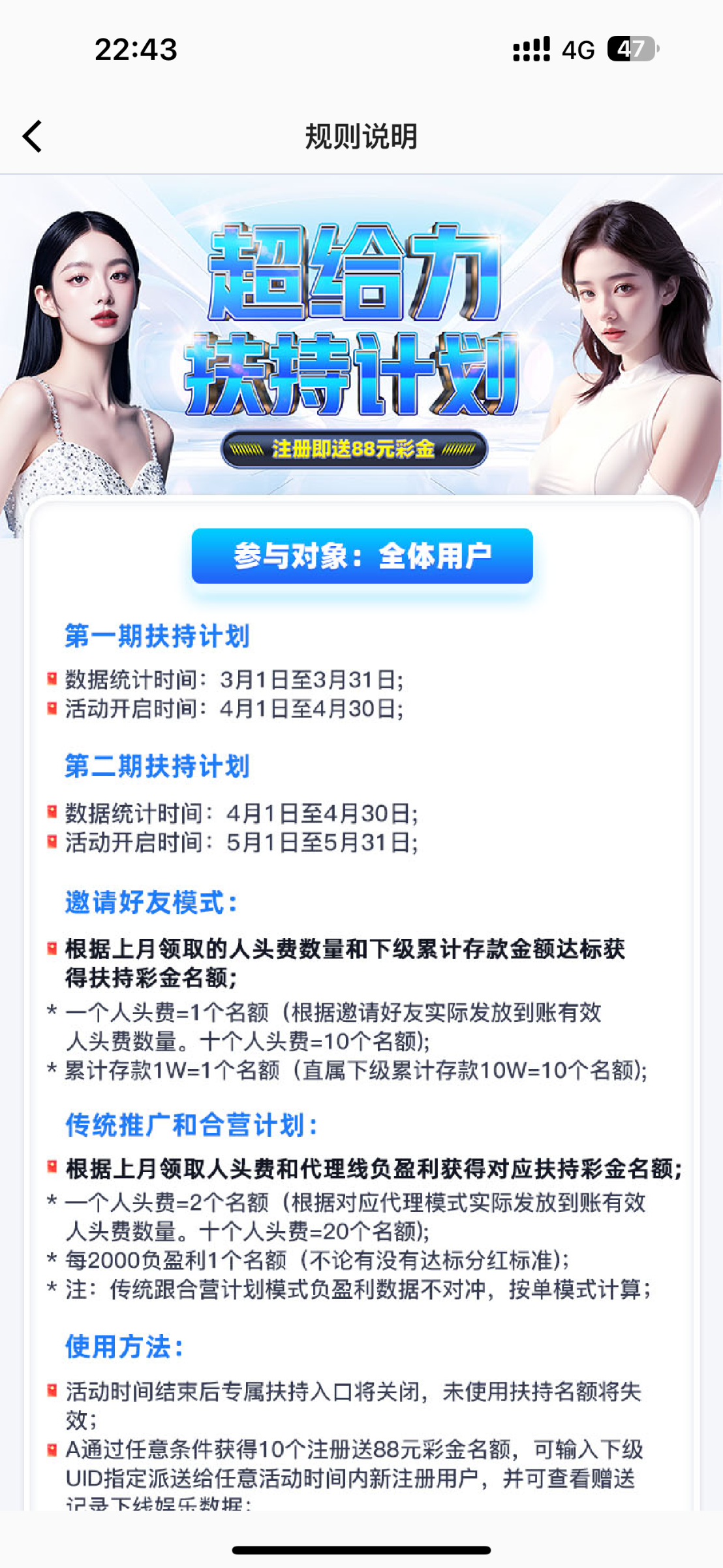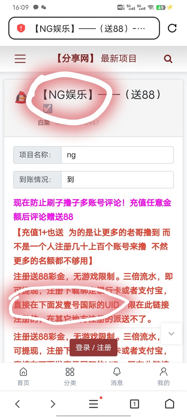注册送88彩金,无游戏限制。三倍流水,即可提现,注册下载绑定银行卡或者支付宝,直接在下面发NG的UID,限在此链接注册的,在其它地方注册的派送不了。