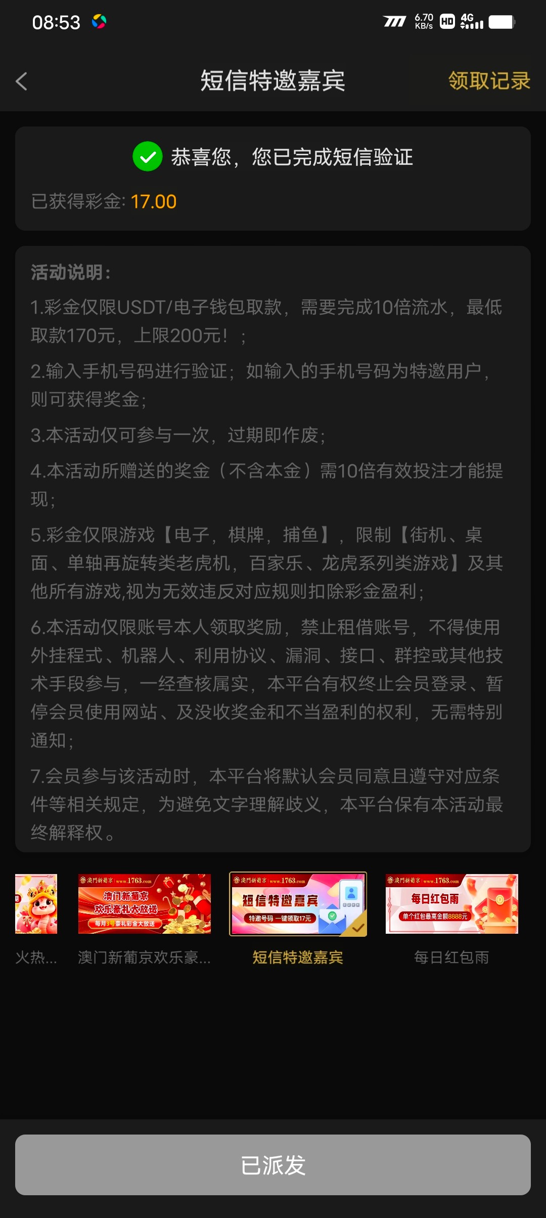 黑网!第一玩就取消返水。