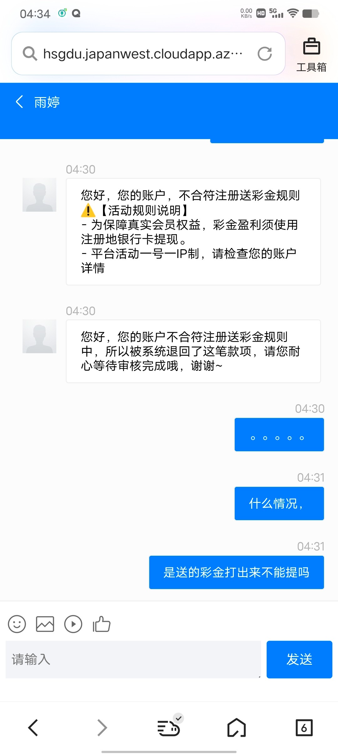 本来自己的老平台输了好多钱,想换一个稍微爆率高的台子去玩的,然后在论坛进去了这个号台子,第一次玩这个平台试试爆率怎么样准备玩的,送的彩金进去打到两百,然后被杀到一百试试看能不能提现,爆率确实可以,但是不能提现都是空的,大家碰到了注意避雷,这种带影片的台子确实没法玩,,既然不符合彩金,那为什么还能领到彩金么,最重要赢了不给你提,这就是格局吗。害,钱不多无所谓