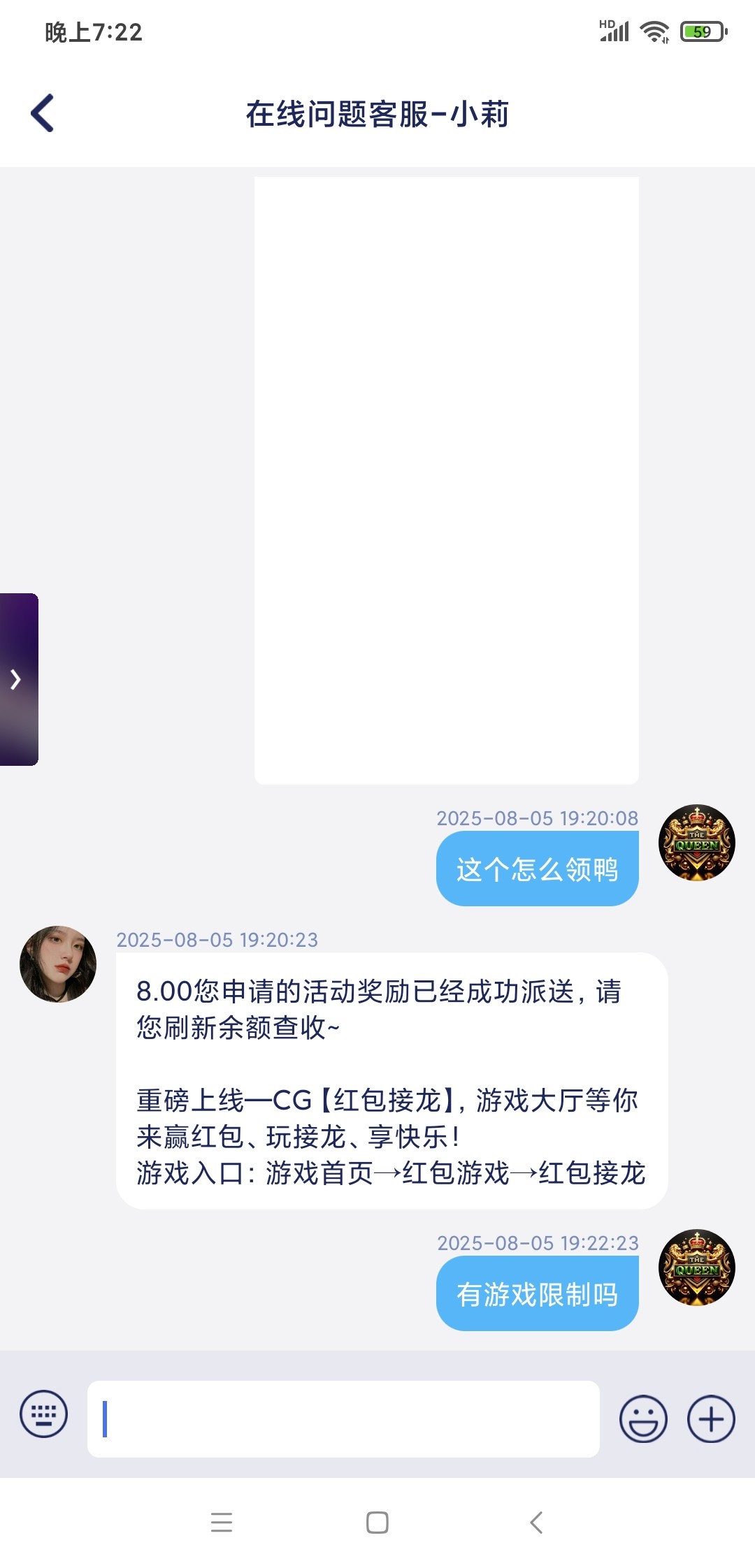抽中了没到号里,找客服要就到了