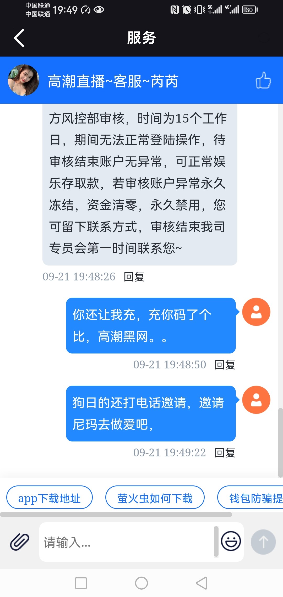 长安只撸狗庄 这些傻逼黄播平台越来越黑,以前还能提出来几个,现在,每天打电话说送,要不就几块,要不就是打出来提现拉黑,真他妈傻逼,我现在接着黄播电话直接骂