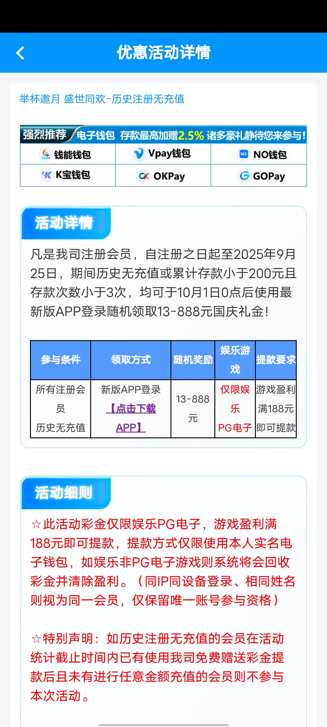 之前发过的威尼斯,没有充值过的最低送13。充值过的最低充28。10月1号APP领取