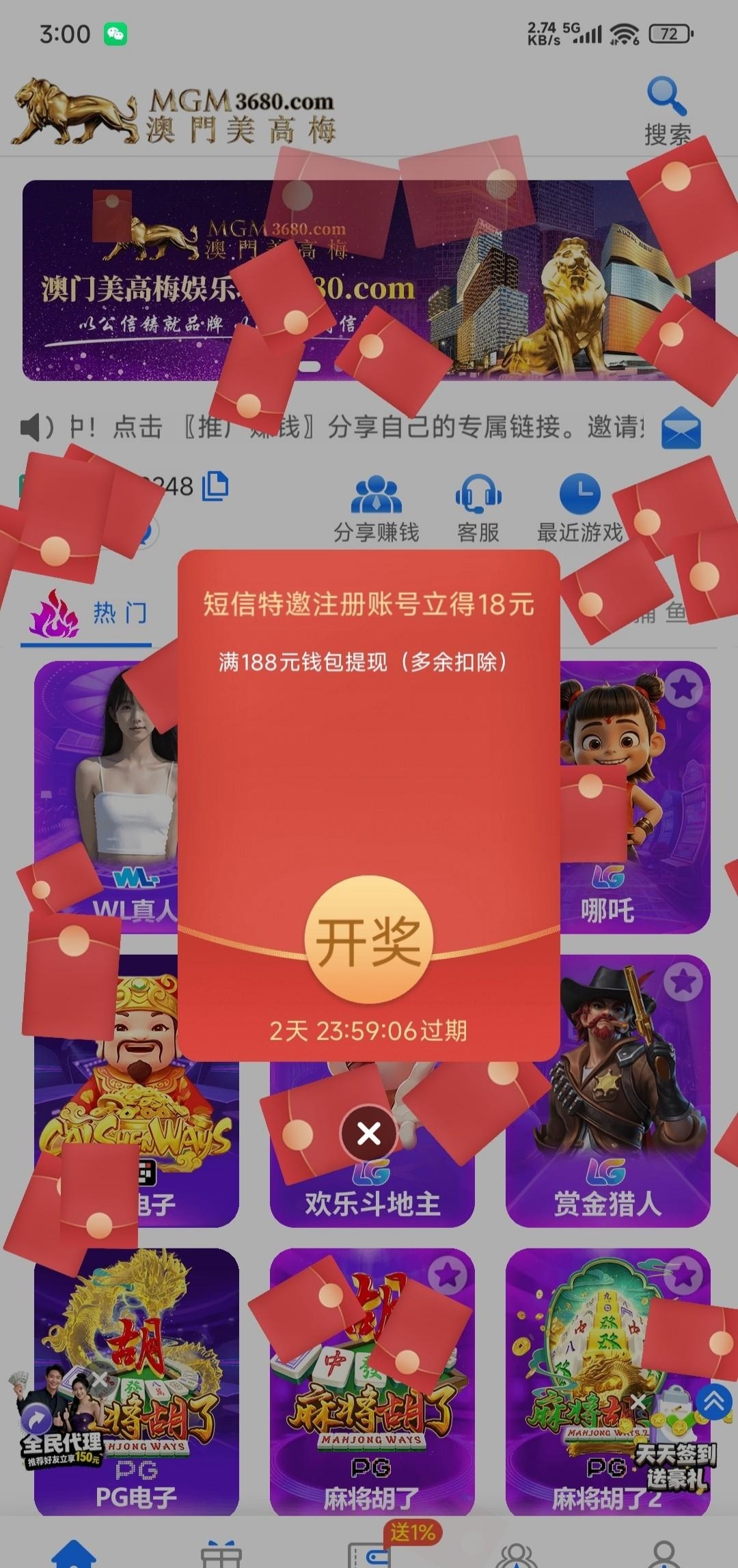 注册彩金18按要求发了短信过去然后找了客服 登记完返回来就弹红包出来了 短信链接HTTP://154.195.198.7 官网3680.com