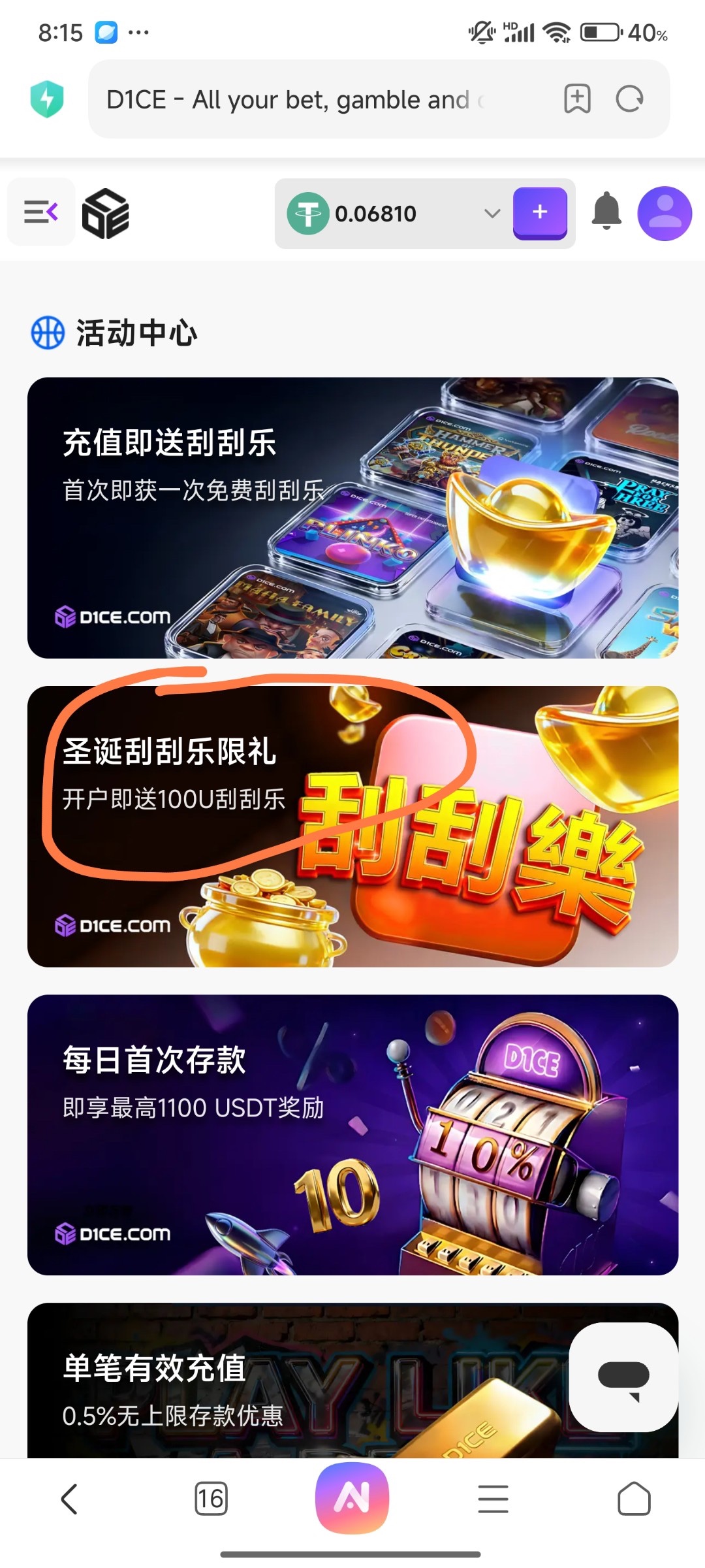 链接:dice888.vip随机送1U~100U
