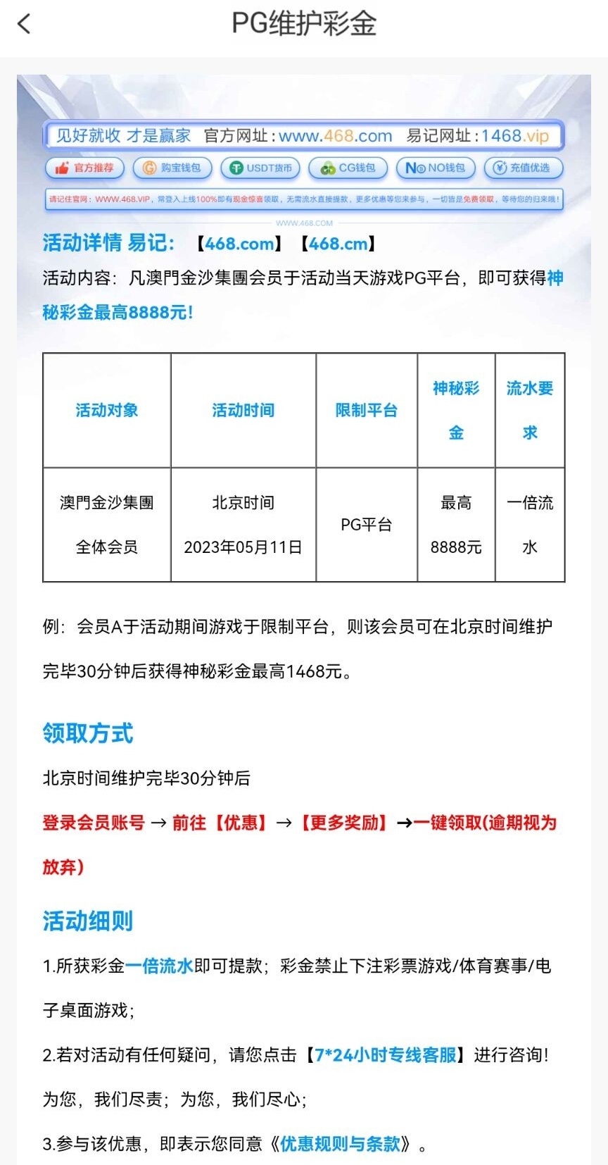Pg维护彩金具体看下图