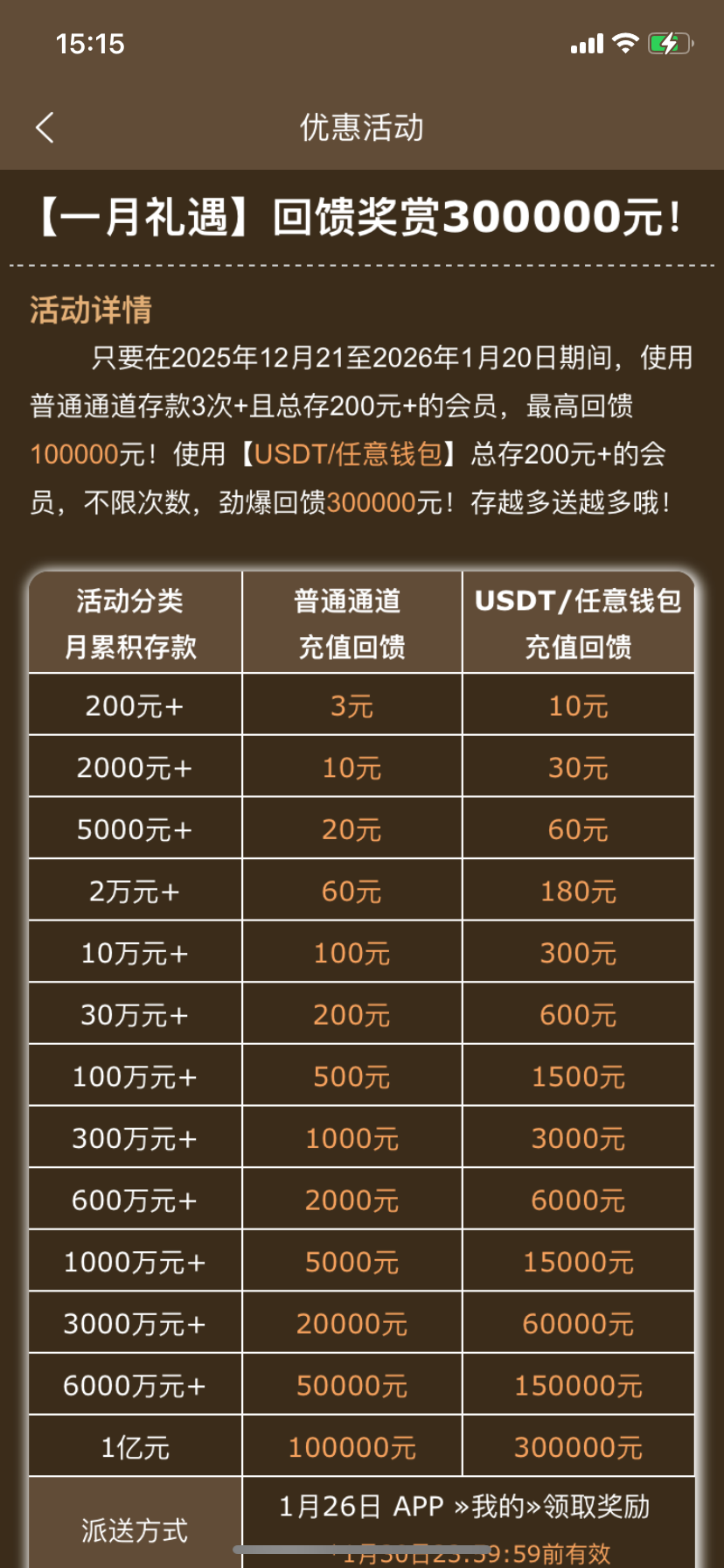 16号的看流水给回馈,26号充值回馈