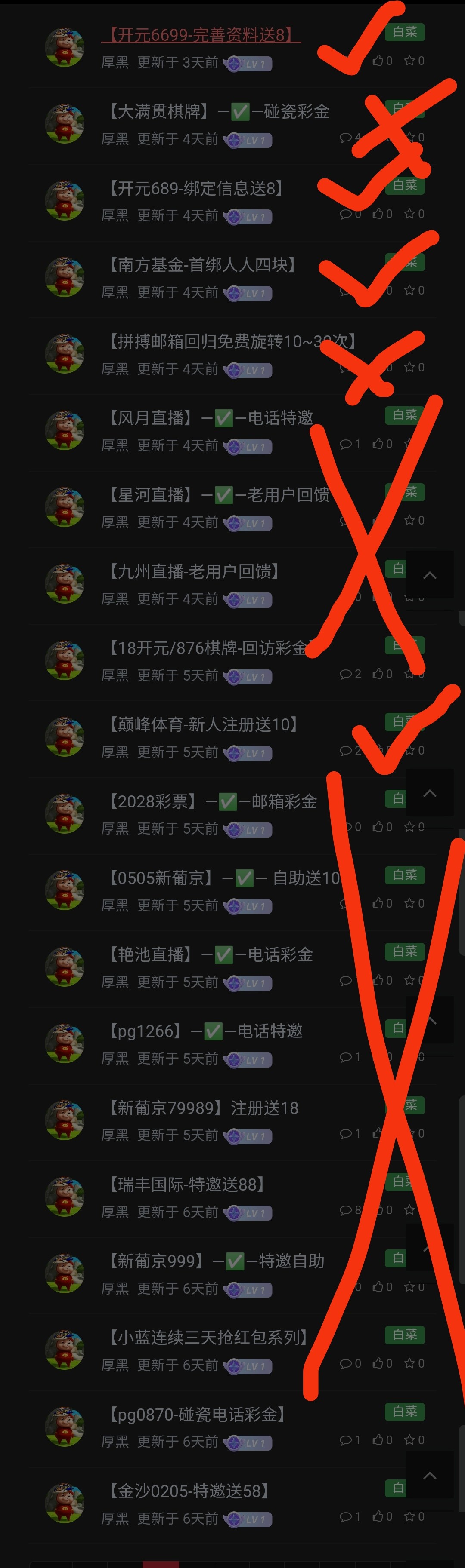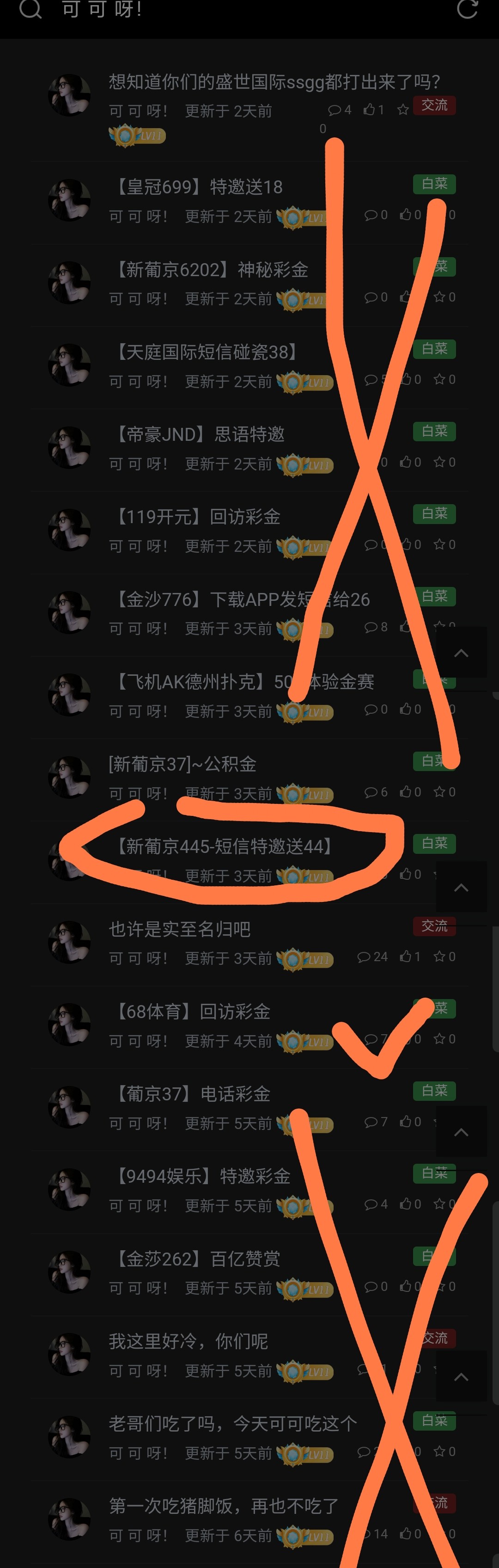 可以了,可可,你还有两个✓号,那俩杂种全是×,那俩杂种都是口水贴