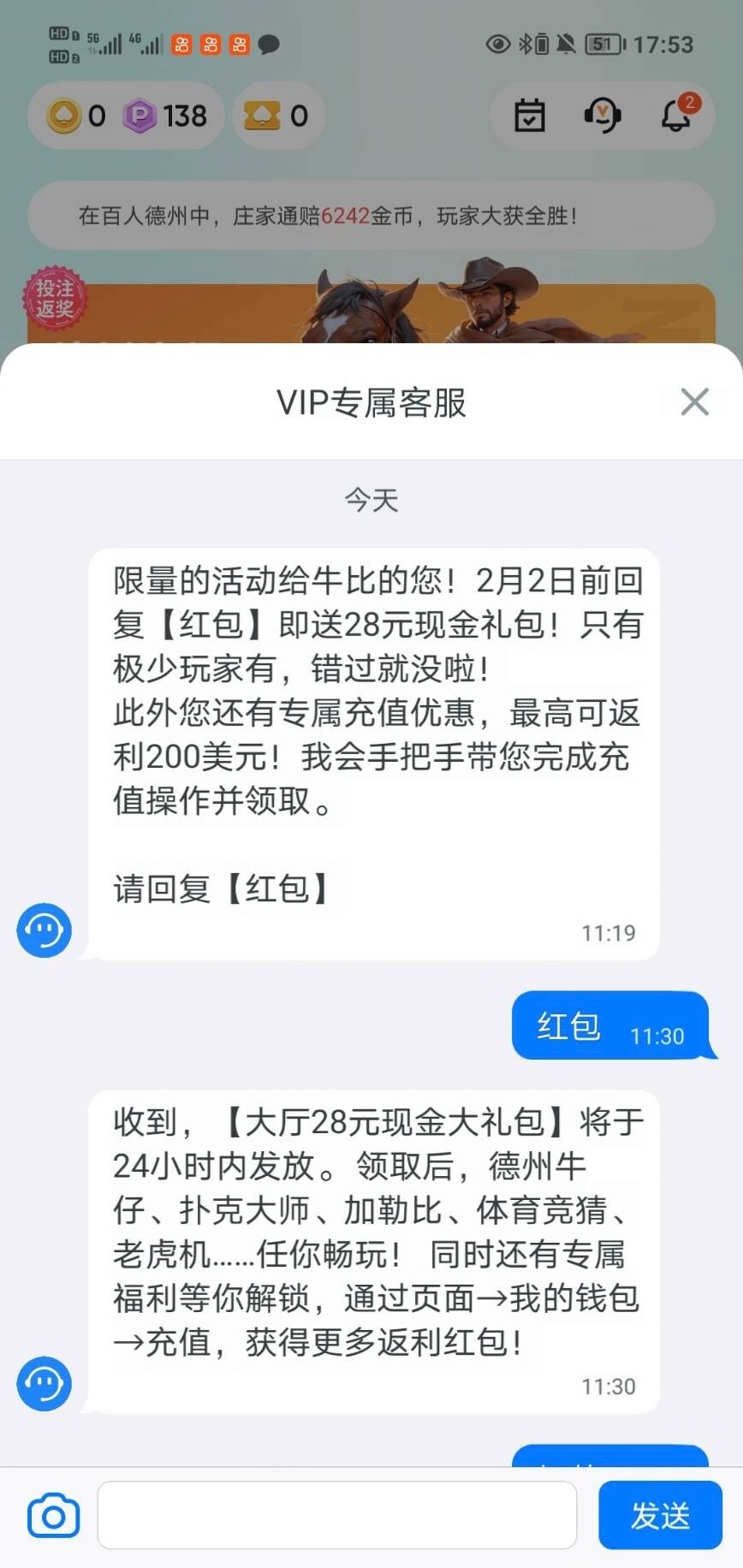 打开app看客服页面,可以打PG