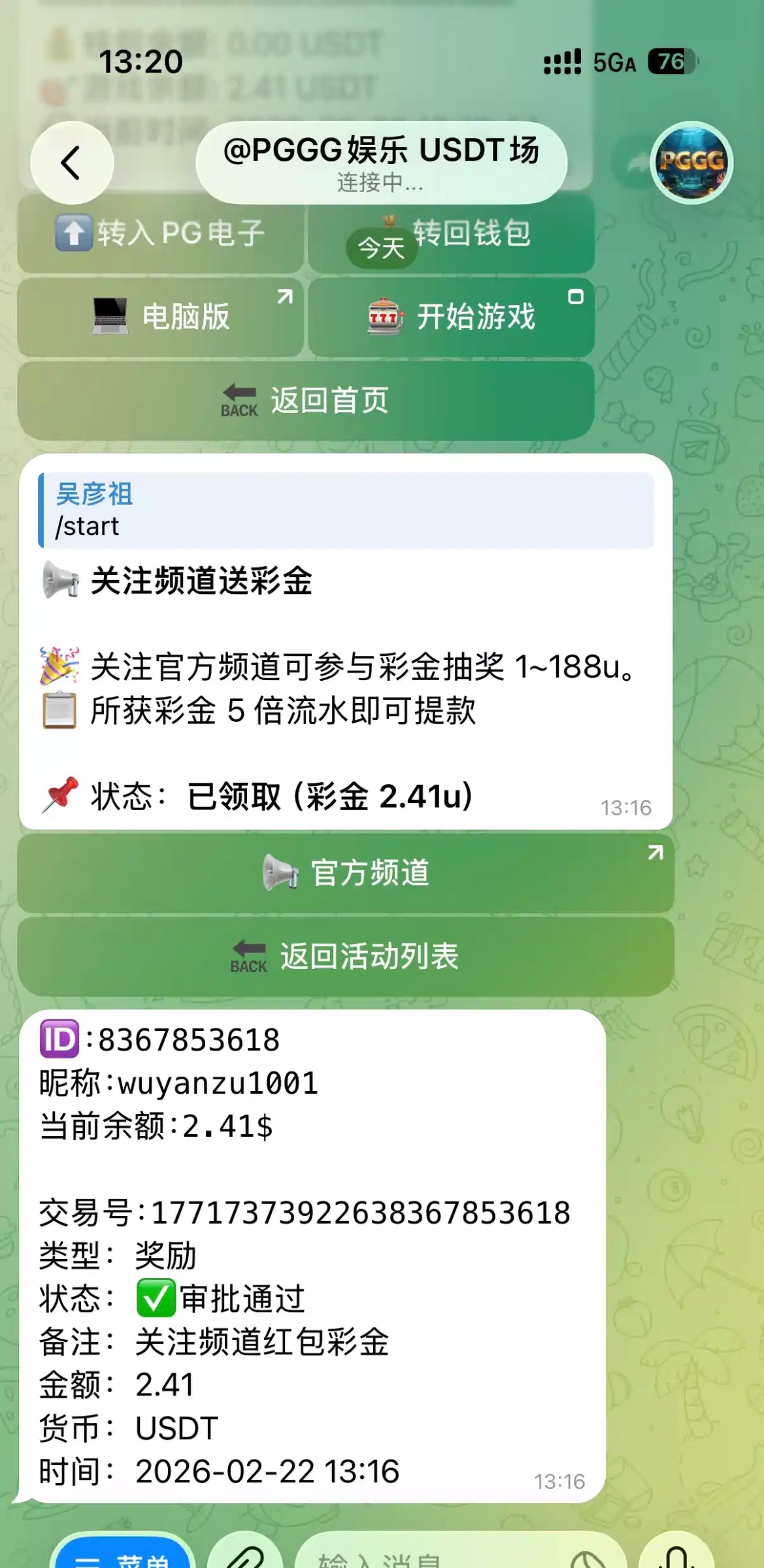 打开机器人关注频道领取,五倍流水,满10u提现https://t.me/pggg