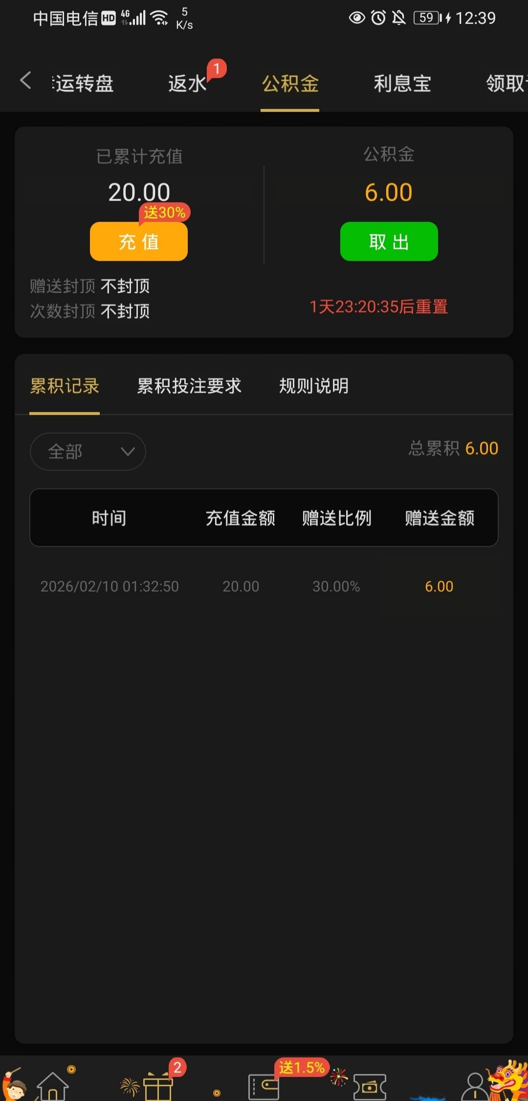 我就半年前充了20,以前充过的可以上去看看,我一两年前充过几千,最近一年前上了20,给了38彩金打出来了 392.com