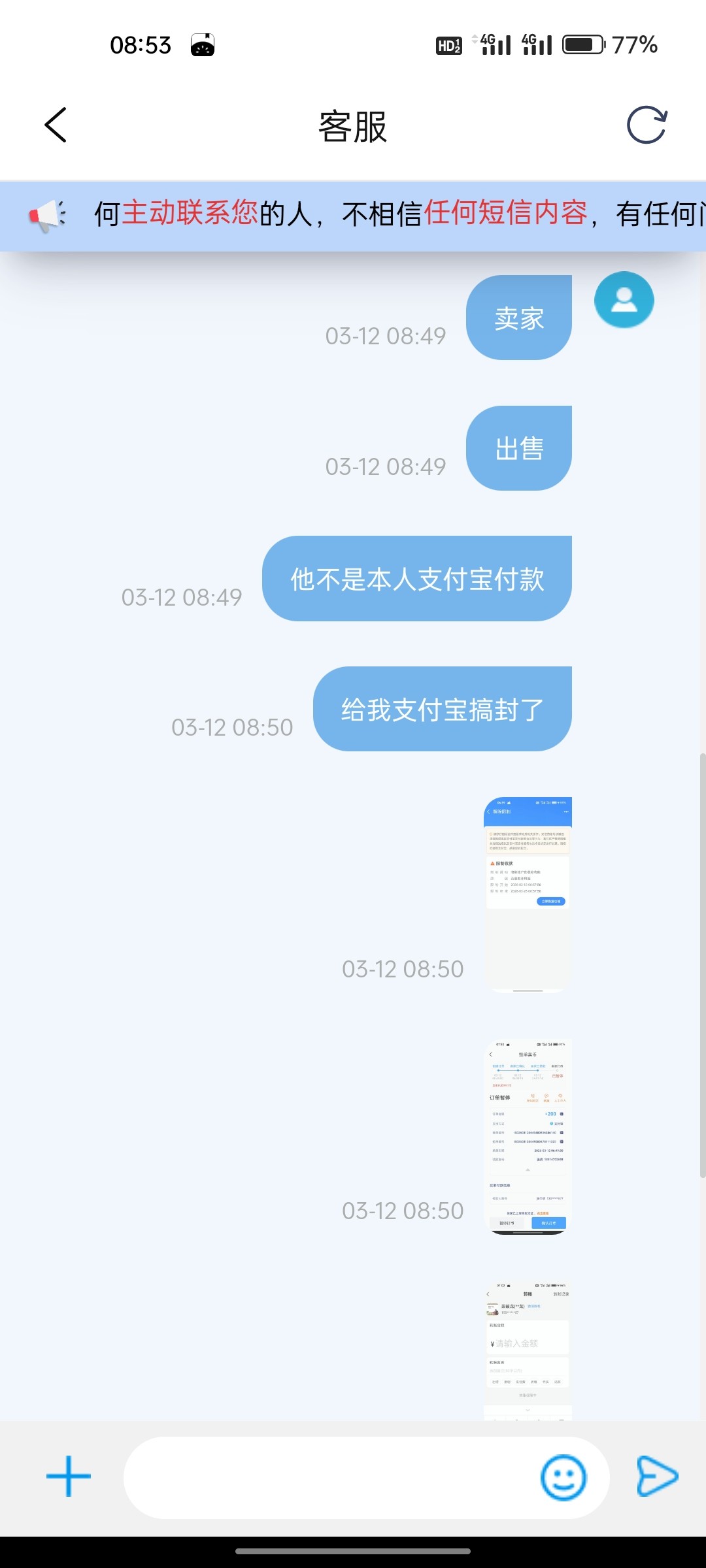 兄弟们盈利多多 不是钱能本人付款给你,必是黑钱,暂停不要放币他,200元你可以没收他,客服也能退给你币